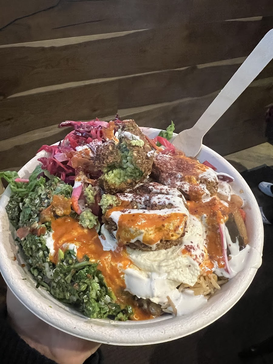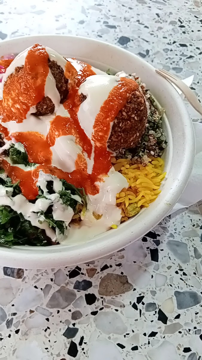 Amazing food and incredible service! We got two wraps and one vegan bowl, all very reasonably priced for the great amount of food. The falafel was delicious and the bowl had such a great variety of vegan salads. All the food was fresh and ready quickly. The employee was very kind and helpful. We will definitely be back!!